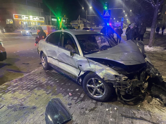 Від удару «Фольксваген» відкинуло на тротуар, де він збив 16-річну дівчину. Постраждалу у шоковому стані госпіталізували.