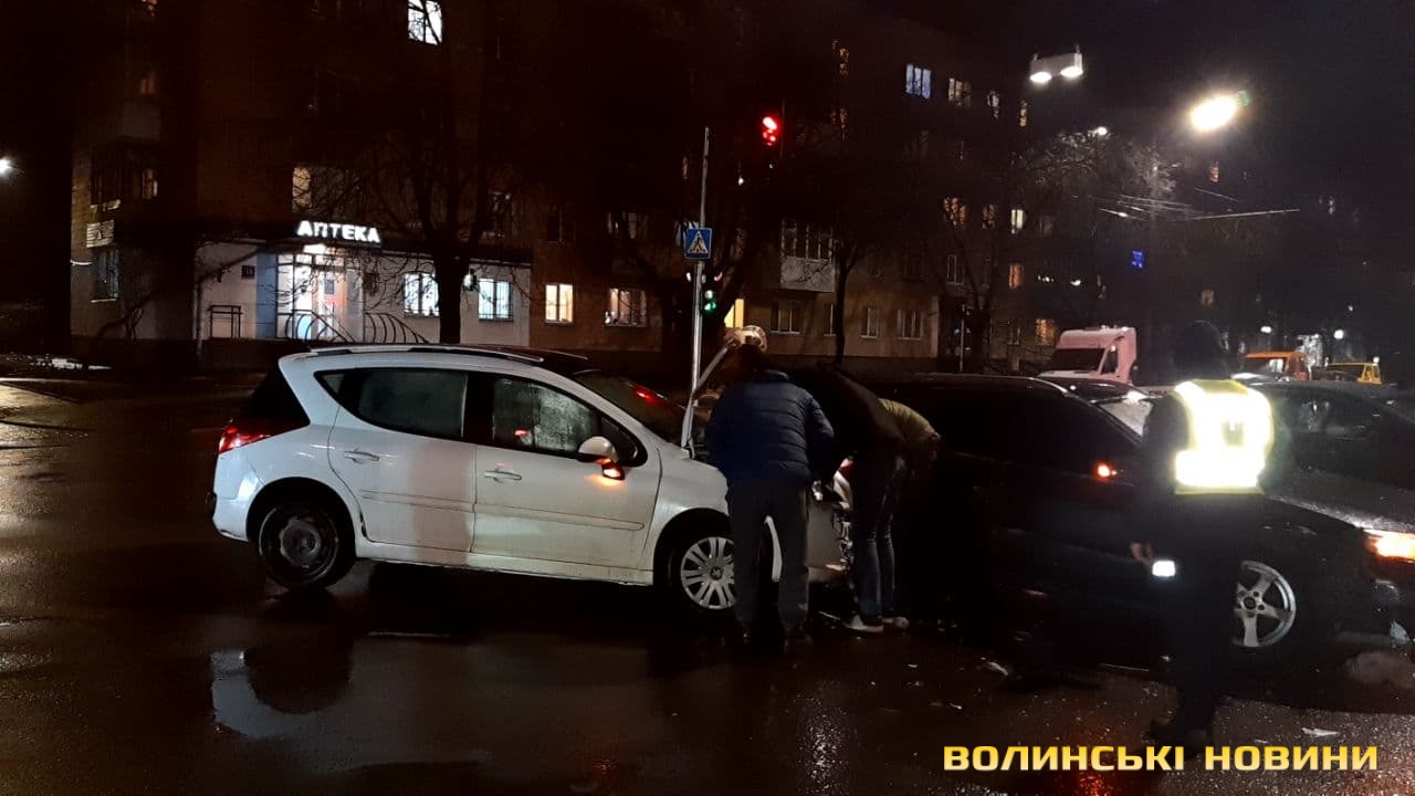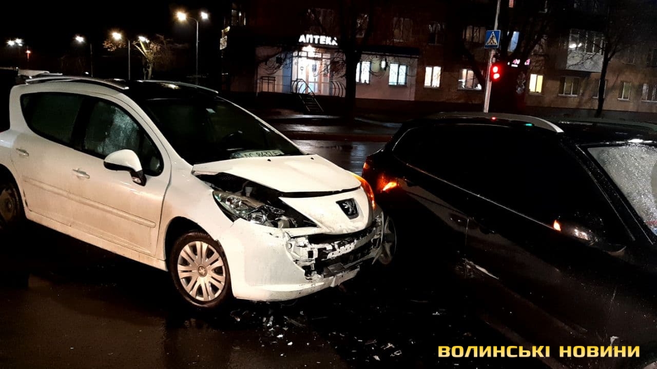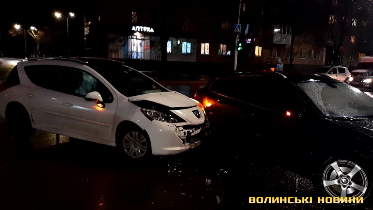 На проспекті Відродження у Луцьку зіткнулися легковики «Рено» і «Пежо».