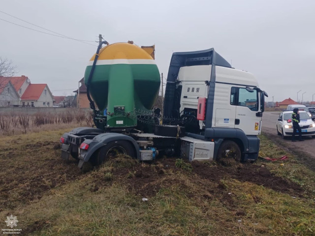 Перша пригода трапилася в суботу, близько 14-ї години. 40-річний водій автомобіля MAN TGS не впорався з керування та з’їхав у кювет.