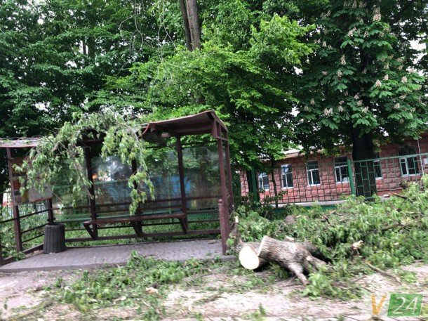 У Луцьку на зупинку громадського транспорту впало дерево.