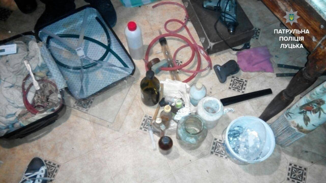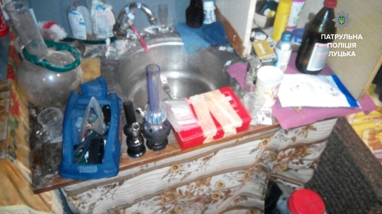 «Було помітно, що в цьому помешканні, можливо, варили наркотичні речовини, адже виявили підозрілі посудини, навіть з написами», - розповів інспектор патрульної поліції Луцька Тарас.