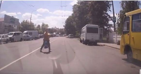 «Двоє пішоходів ледь не відправились на той світ, будьте обережні» – відео з реєстратора саме з таким підписом розмістив сьогодні, 9 червня, на каналі Youtube користувач з ніком Серёга \КСФ\.