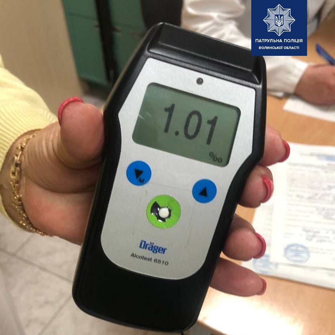 Огляд на стан алкогольного сп’яніння керманичка пройшла у медичному закладі. Результат — 1,01 проміле, що в 5 разів перевищував допустиму норму.