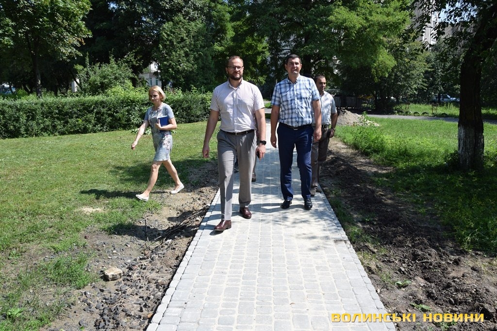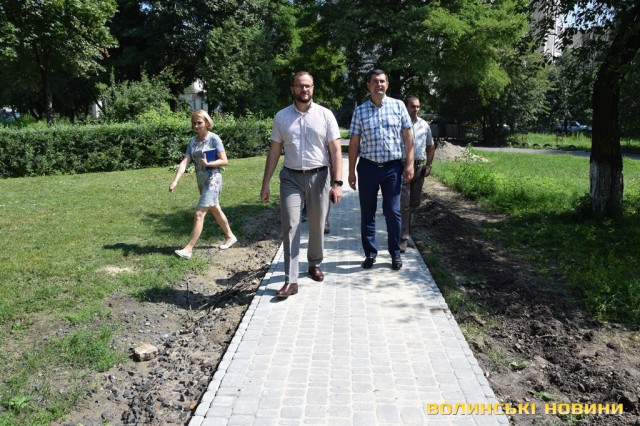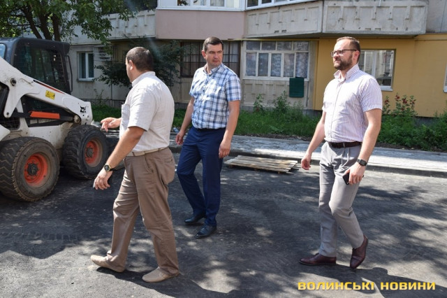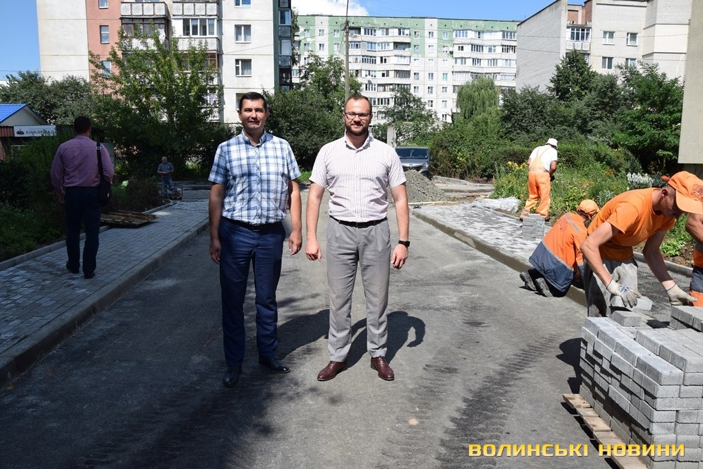 26 липня перший заступник Луцького міського голови Григорій Недопад, радник міського голови Ігор Поліщук та керівник департаменту ЖКГ Юрій Крась оглянули стан ремонтних робіт на різних ділянках міста, аби виявити зони, що потребують доопрацювання та проконтролювати якість виконання робіт із благоустрою.Спочатку оглянули територію на вул. Корольова, де тривають роботи із асфальтування проїзної частини та влаштування тротуарного покриття із бруківки. У цьому мікрорайоні мешканці тепер матимуть змогу користуватися новою пішохідною доріжкою біля нової та сучасної амбулаторії, оснащеної сучасною технікою, де створені усі умови для комфортного та якісного обслуговування пацієнтів. Тепер поруч із амбулаторією люди матимуть облаштовані зупинки, пішохідні зони зі зручними пониженнями, вкриті якісною бруківкою.На стадії завершення перебувають роботи із влаштування щебеневого покриття з напівпросоченням бітумною емульсією на вул. Ольги Бессараб та на вул. Комка, а також вул. Покальчуків. Така система дорожнього покриття вигідна і практична. Вона дозволяє досить швидко і якісно укладати рівне дорожнє покриття, яке надійно слугуватиме упродовж багатьох років.– У районі Вересневе здійснено доволі велику кількість робіт, – розповів Ігор Поліщук. – Ми приділили особливу увагу районам приватного сектору, де раніше подібних робіт люди не знали. Але там також живуть лучани, які потребують рівних доріг і зручних доїздів, тому звертаємо увагу як на центральні зони міста, так і на віддалені райони.