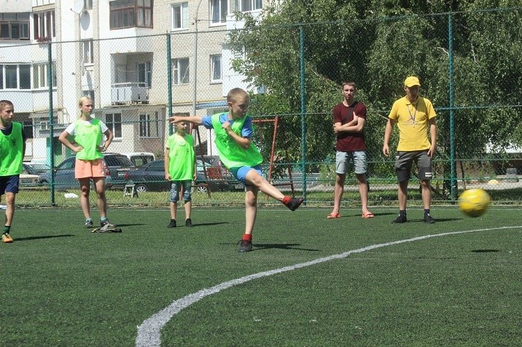 На заняттях учасники покращують свою фізичну форму під час пробіжки та розминки. Цікаві футбольні естафети розвивають координацію рухів, спритність, командний дух та витривалість.