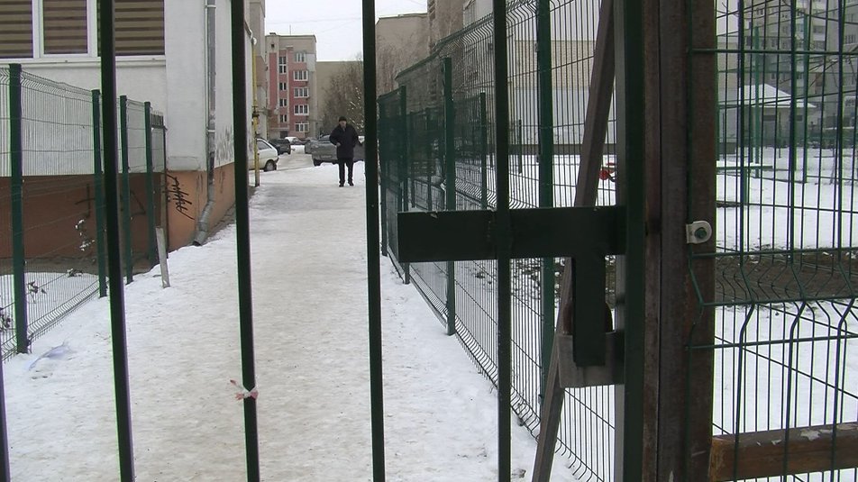 Як розповіла в телефонному коментарі Суспільному голова ОСББ «На летовищі» Олена Завадська, паркан з хвірткою на замку становили, щоб захистити людей від бурульок, які звисають з даху будинку.