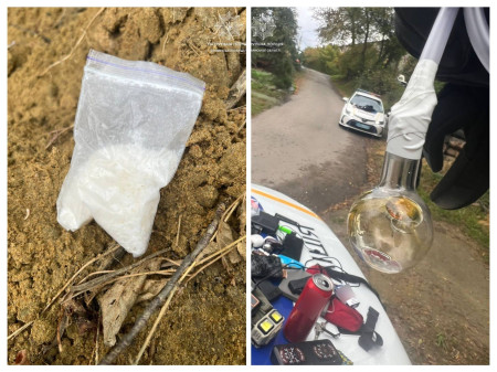 Патрульні вирішили зупинити громадян для проведення поверхневої перевірки та документів. У одного з чоловіків було виявлено прозорий зіп-пакет із білою кристалічною речовиною, зовні схожою на наркотичну.