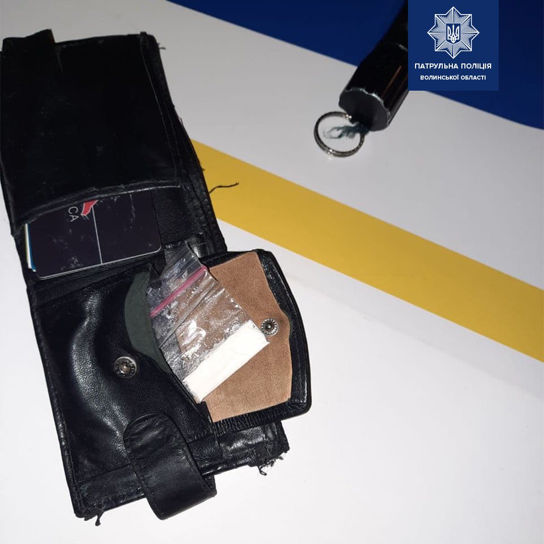 Під час спілкування із чоловіком, він поводив себе підозріло, тож до нього, відповідно до ст. 34 Закону України «Про Національну поліцію», патрульні застосували превентивний захід поверхневу перевірку. Під час цього у особи виявили порошкоподібну речовину білого кольору, ззовні схожу на наркотичну, інформують на сторінці патрульної поліції Волині у Фейсбуці.