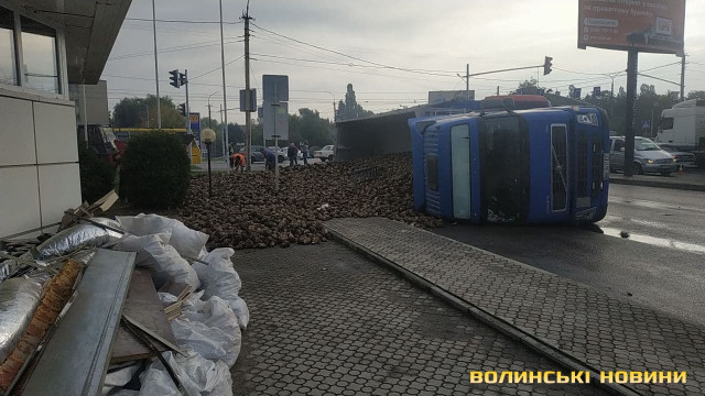 У Луцьку перекинулася вантажівка з цукровими буряками. Фото. Оновлено