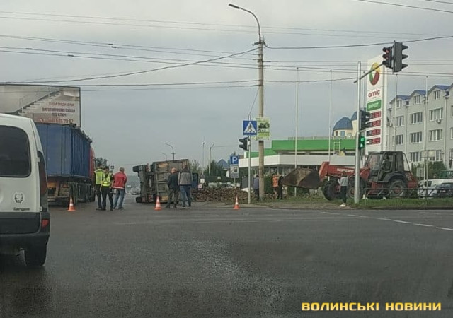 У Луцьку на вулиці Дубнівській перекинулася великогабаритна вантажівка з цукровим буряком.