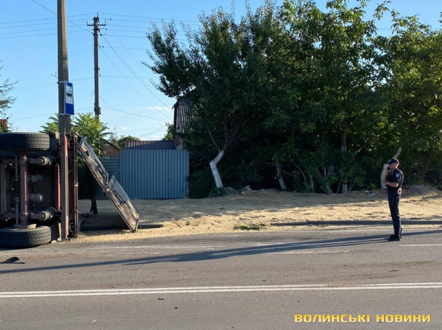 У Луцьку перевернулась вантажівка з зерном. Аварія трапилася близько 18.30 на вулиці Ковельській.
