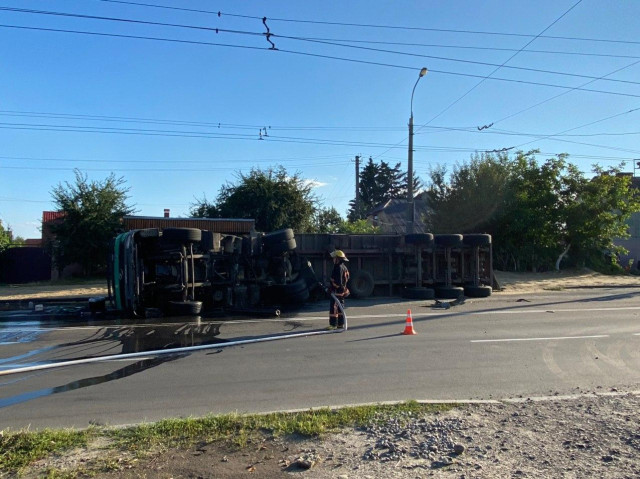 У Луцьку перевернулась вантажівка з зерном. Аварія трапилася близько 18.30 на вулиці Ковельській.