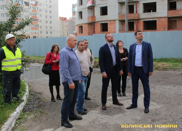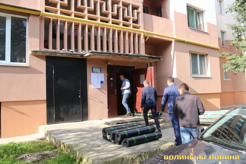 Наступним оглянули будинок на проспекті Відродження, 30, де триває ремонт покрівлі. Голова ОСББ Неоніла Слюсар повідомила, що після цього планують замінити внутрішньобудинкові мережі. Ремонту потребє також прибудинкова територія.
