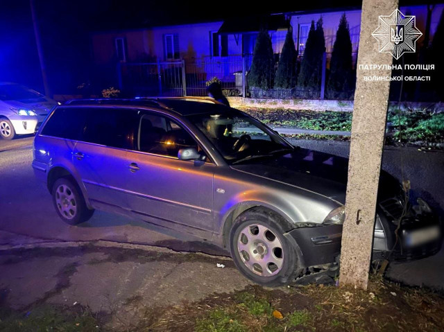 У Луцьку п'яний 16-річний водій врізався в авто, а потім в електроопору