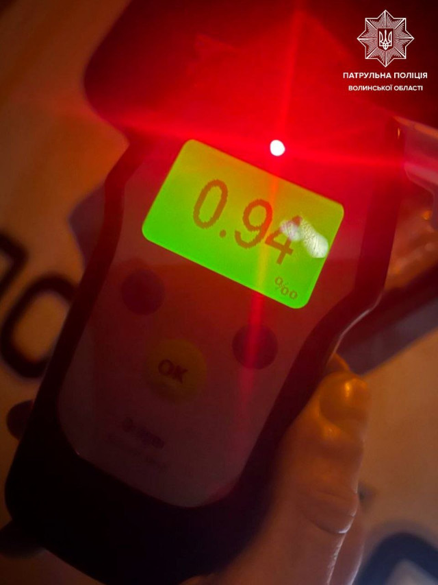 Патрульні виявили у молодого чоловіка ознаки алкогольного сп’яніння. Йому запропонували пройти огляд за допомогою приладу Drager, і алкотестер показав результат 0,94 проміле.
