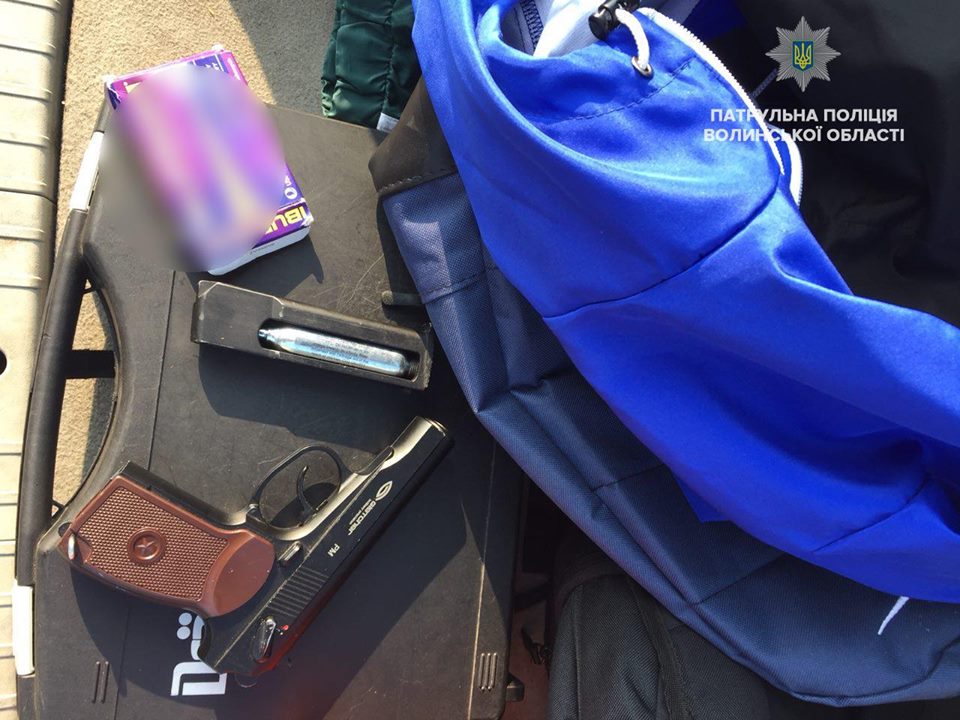 Сьогодні, близько 8 години, екіпаж патрульних отримав повідомлення, що в Луцьку, на вулиці Гулака-Артемовського, ходять 2 особи в стані алкогольного сп’яніння та розмахують пістолетом.