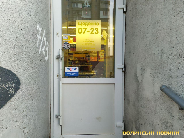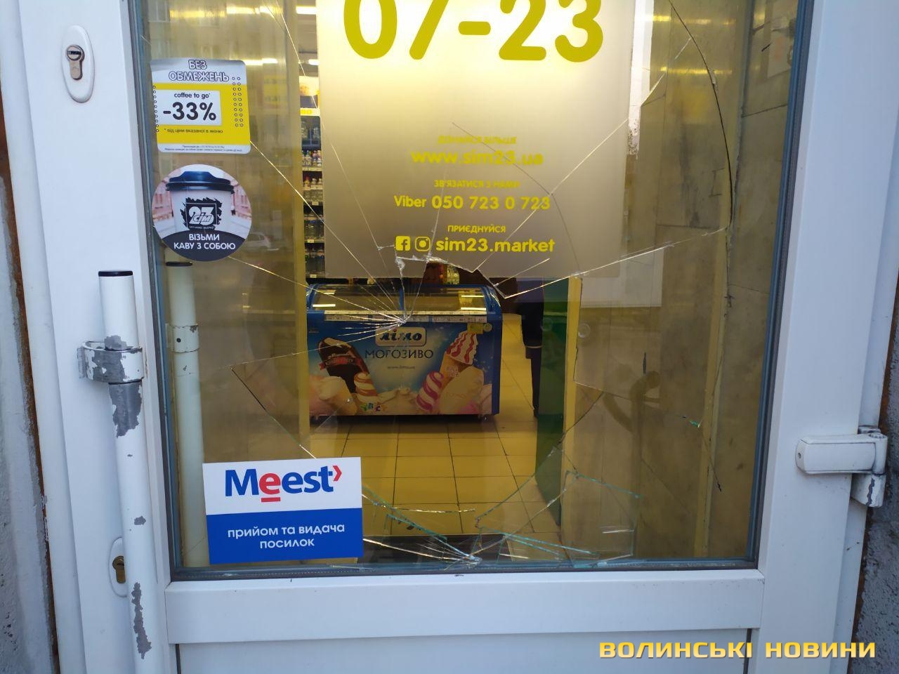 У Луцьку п’яний хуліган розтрощив двері магазину та пошкодив авто
