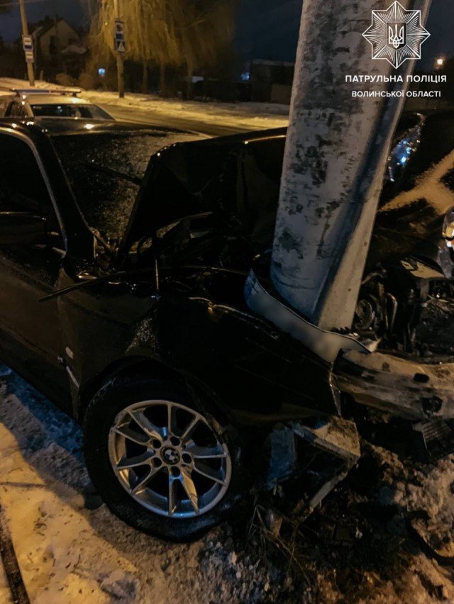 У Луцьку п’яний водій BMW, який зіткнувся з двома авто та втік, «припаркувався» в стовп