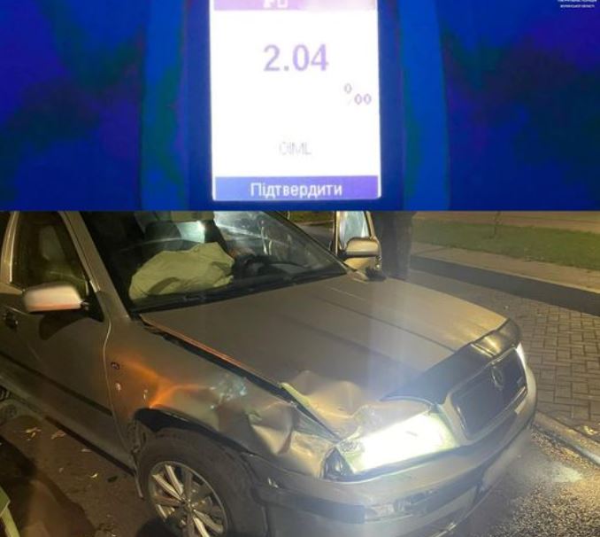 Спілкуючись з винуватцем ДТП, інспектори помітили у нього ознаки алкогольного сп’яніння. Чоловік пройшов огляд на місці, результат – 2, 04 проміле.