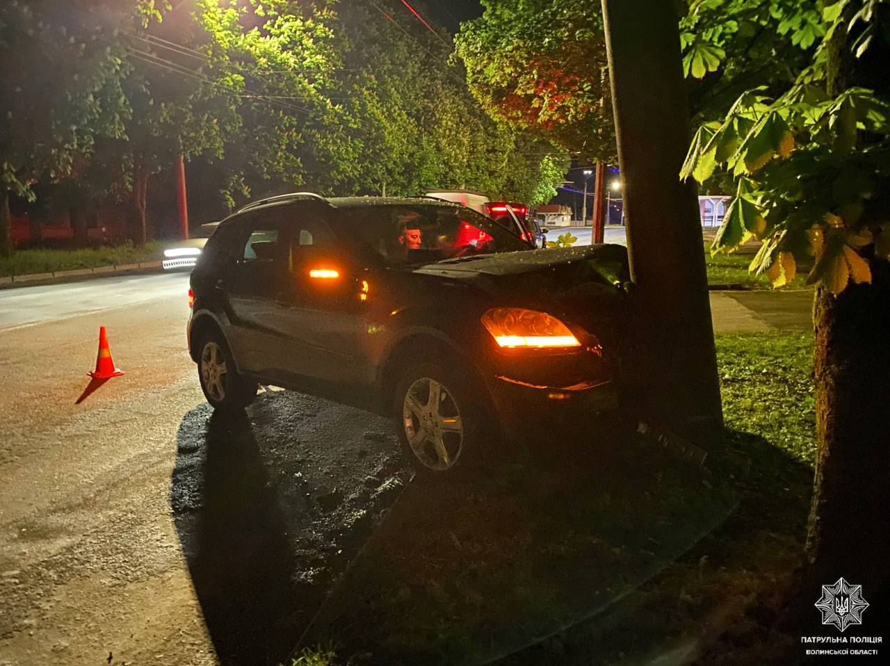 У Луцьку п'яний водій Mercedes тікав від патрульних і врізався в електроопору