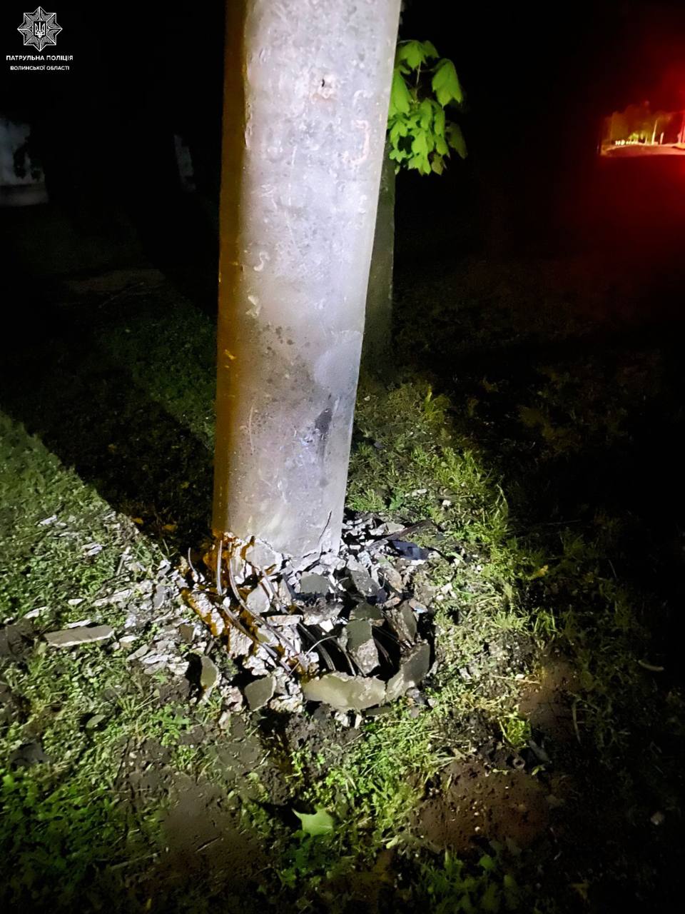 Уже на службовому авто патрульні увімкнули проблискові маячки, проте керманич збільшив швидкість, намагаючись утекти, і, не впоравшись з керуванням, скоїв наїзд на електроопору.