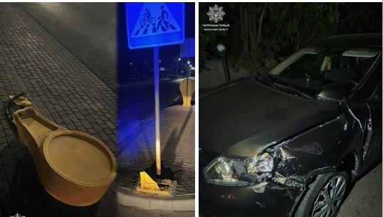 У Луцьку пʼяний водій Nissan влетів у дорожній знак, а потім втік