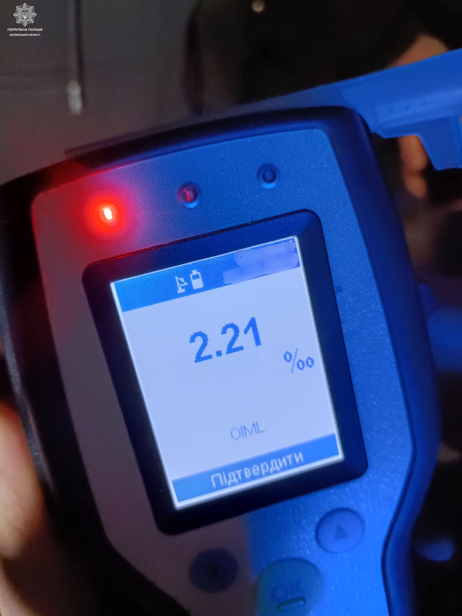 Під час спілкування у керманича патрульні помітили ознаки алкогольного сп’яніння. Чоловік пройшов огляд на місці, результат – 2,21 проміле.