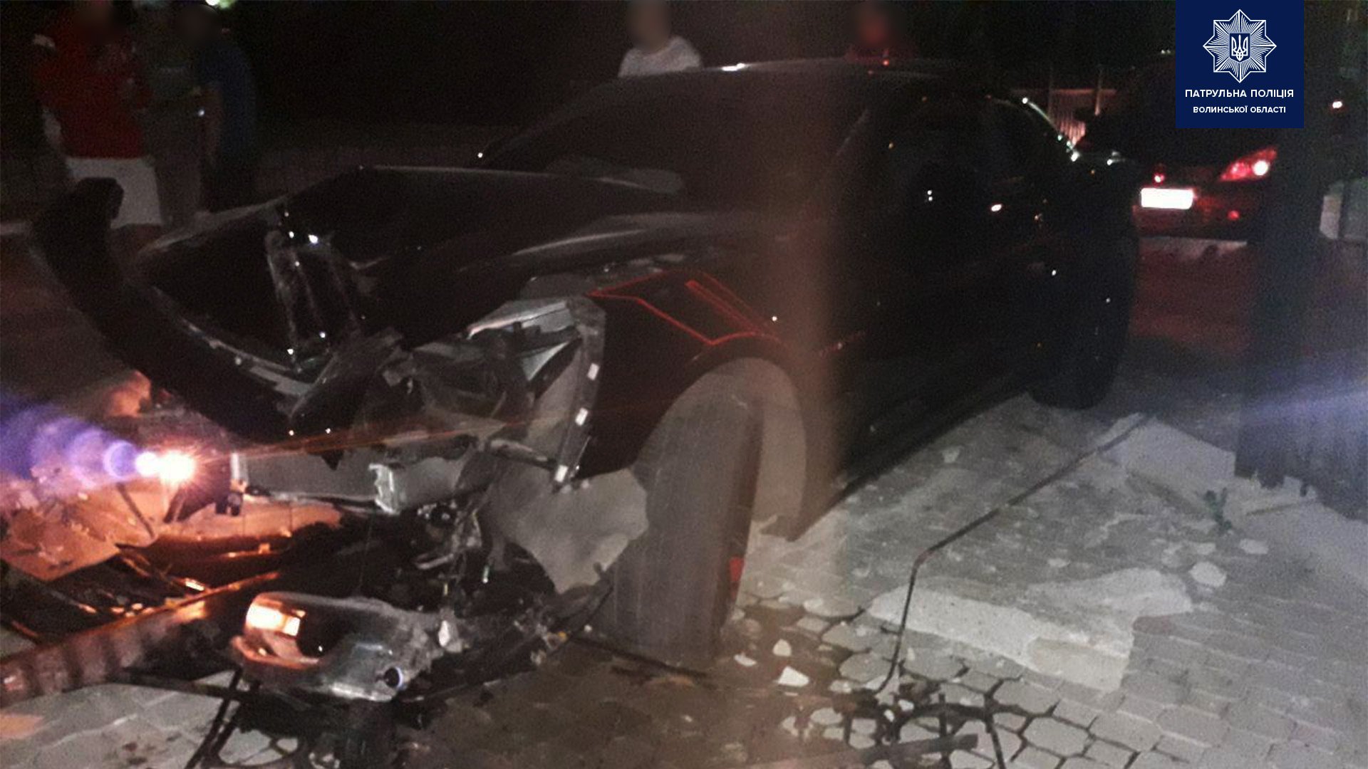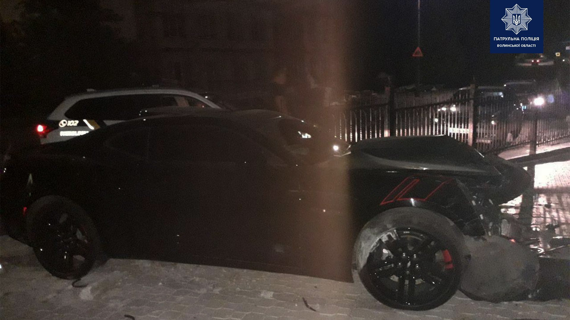 У Луцьку п’яний водій на спорткарі втікав від поліції і зніс паркан. Фото