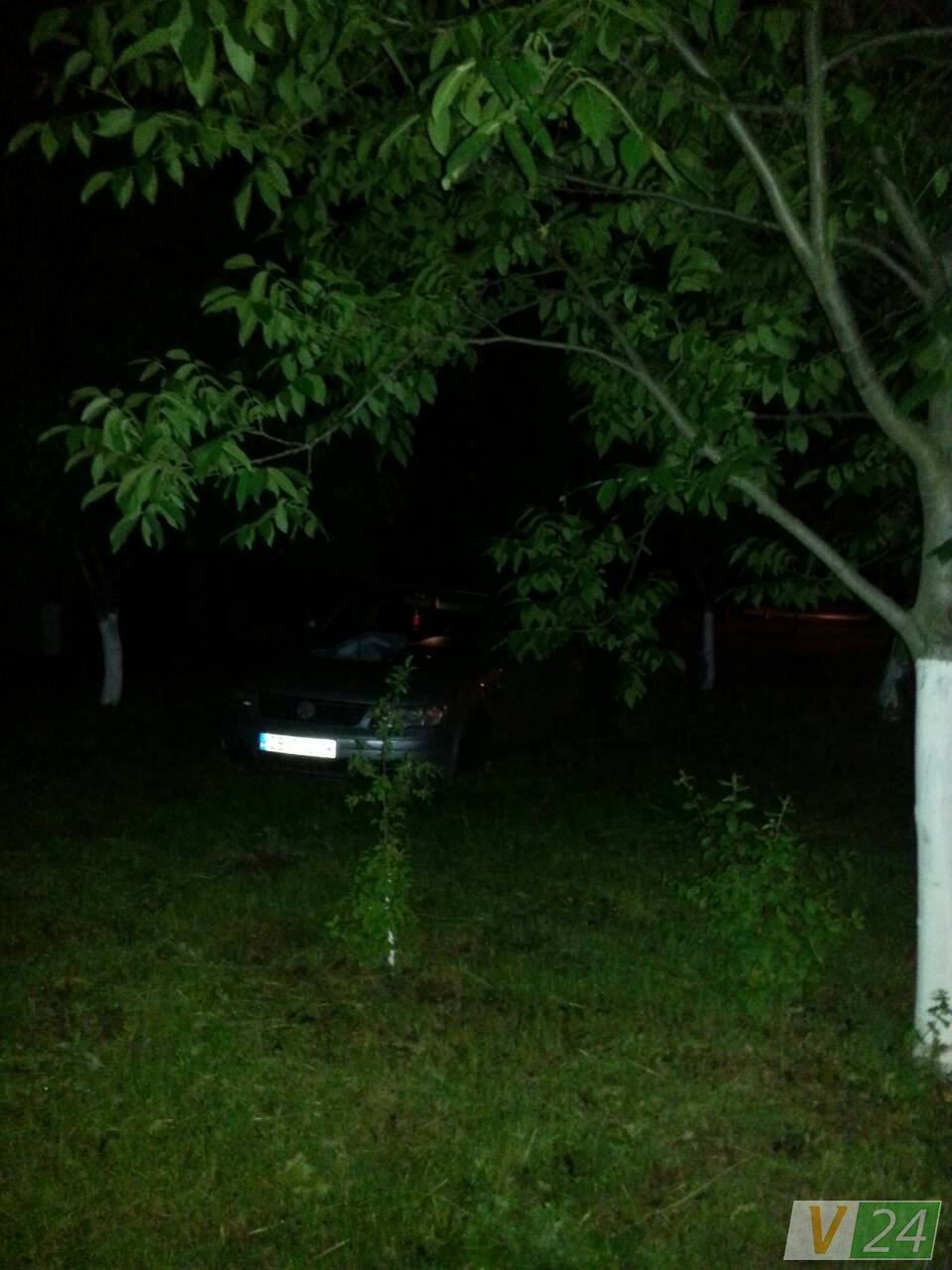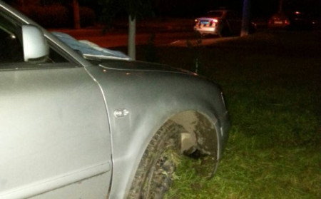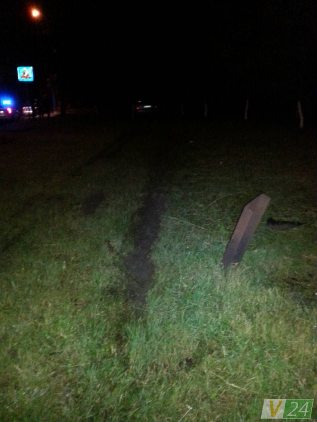 Компанія нетверезих молодиків на Фольксвагені на єврономерах злетіла з дороги. Автівка потрощила бордюр і дерево.