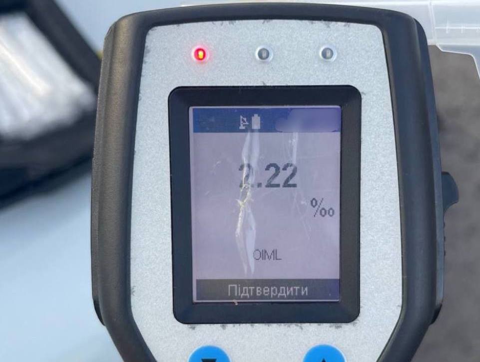 Під час перевірки документів та спілкування з 24-річним керманичем інспектори помітили у нього ознаки алкогольного сп’яніння. Чоловік погодився пройти огляд на місці події, результат – 2,22 проміле.