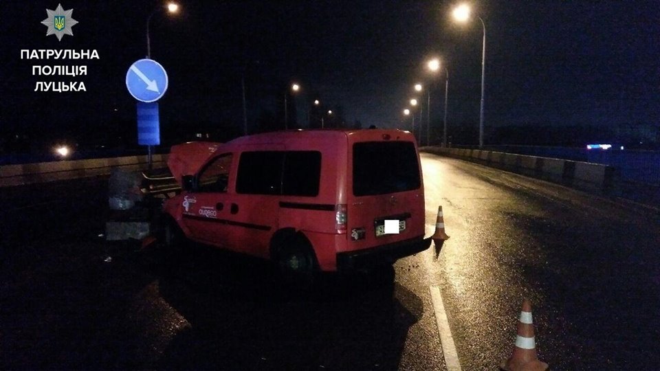 П’яний водій автомобіля Опель Комбо на мосту над вулицею Ківерцівською врізався у металевий бар’єр. Аварія трапилася у Луцьку у ніч на понеділок, 1 січня, інформує Патрульна поліція Луцька.