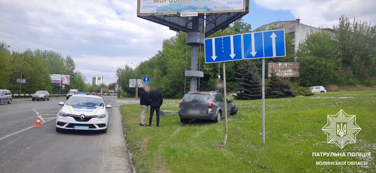 Керманич автомобіля Renault не вибрав безпечної швидкості, внаслідок чого здійснив виїзд за межі проїзної частини, де й скоїв наїзд на дорожній знак, інформують у патрульній поліції Волині.