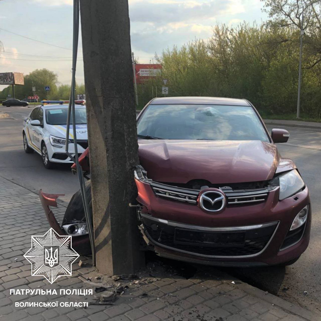 Прибувши на місце події, поліцейські виявили водія Mazda СХ- 7, який не вибрав безпечної швидкості, не врахував дорожню обстановку, внаслідок чого пошкодив свій транспортний засіб, в’їхавши в електроопору.