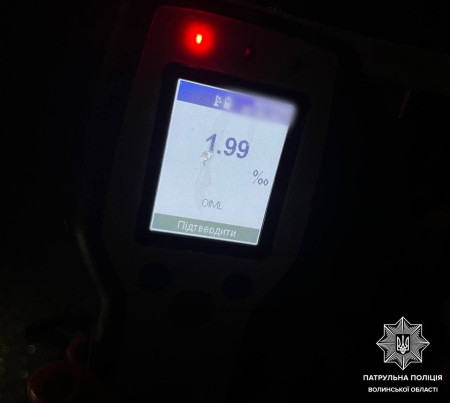 Під час спілкування з 34-річним керманичем поліцейські помітили у нього ознаки сп’яніння та запропонували пройти огляд на місці, на що він погодився. Прилад Drager показав результат у 1, 99 проміле, повідомили у патрульній поліції Волині.