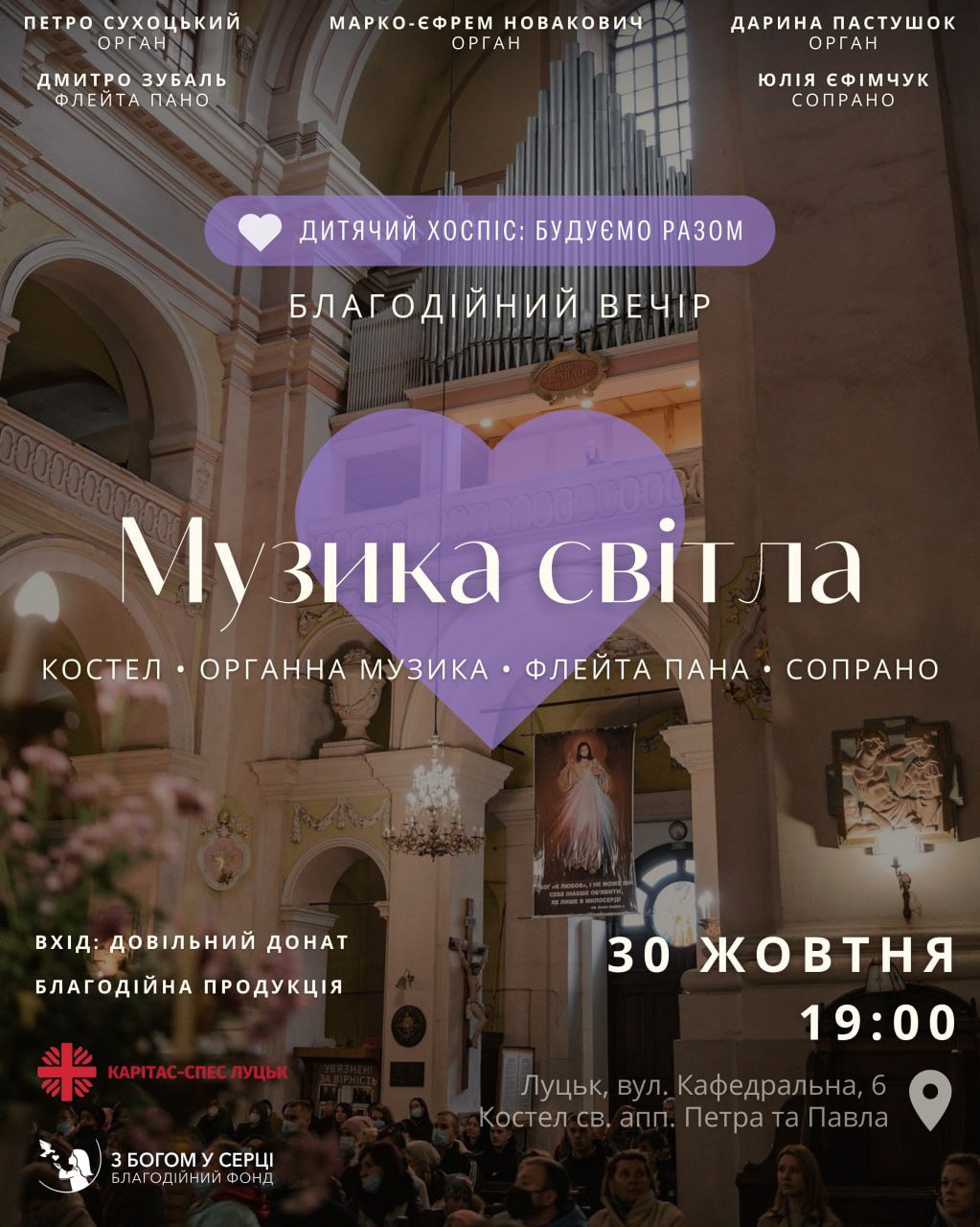 Захід відбудеться 30 жовтня о 19:00 у костелі св. апп. Петра та Павла РКЦ на Кафедральній, 6.