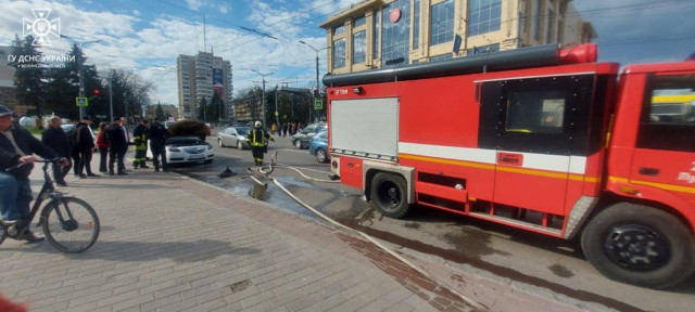 Це сталося поблизу ЦУМу. В іномарки пішов дим з-під капоту. На місці події працювали рятувальники.