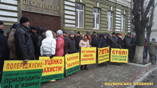 У Луцьку під прокуратурою - мітинг проти свавілля Кватирка в «бурштиновому лісгоспі»