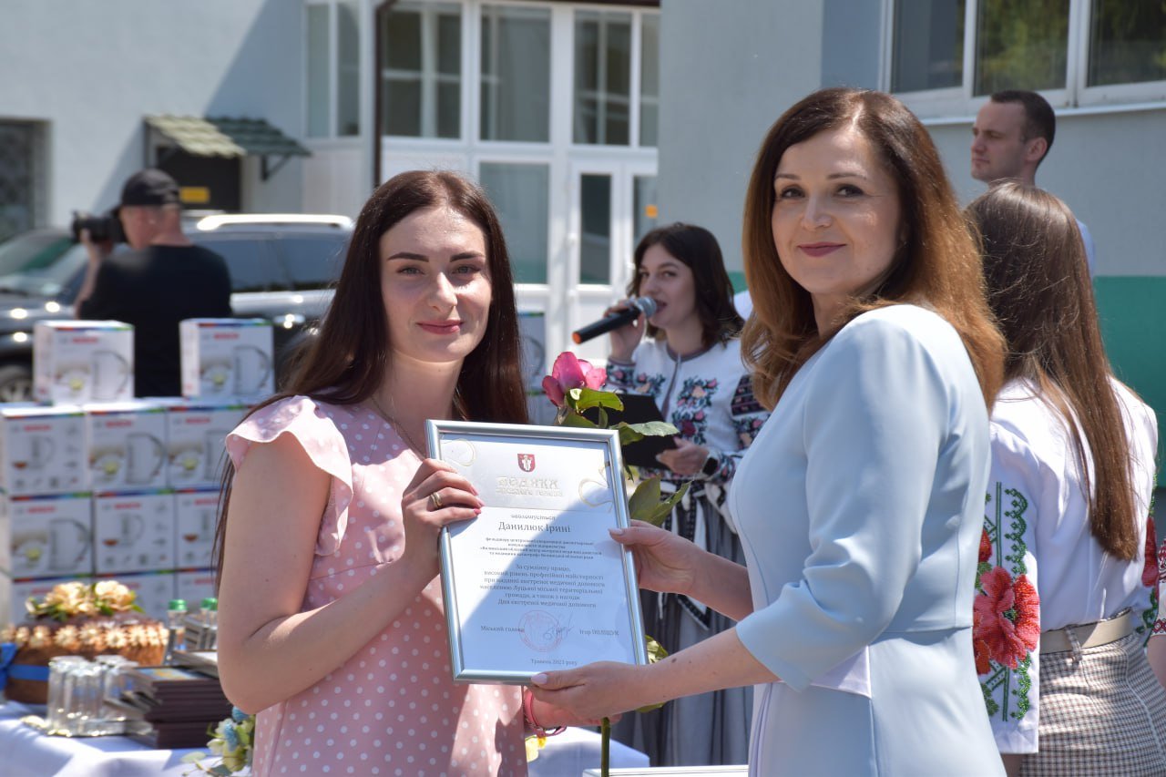 «Нехай Божа Благодать зійде на вас, нехай Божа Матір стане захисником в усіх справах, які ви робите, а справа ваша – велика. Від вашого рішення та першої дії залежить життя та майбутнє тієї людини, яка потребує допомоги. Нехай здійсняться ваші мрії та задуми, а найбільша наша мрія сьогодні – завершення війни нашою перемогою, поверненням усіх військових, рідних, близьких додому живими», – зазначила Ірина Чебелюк та вручила працівникам «швидкої» подяки міського голови.