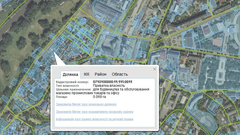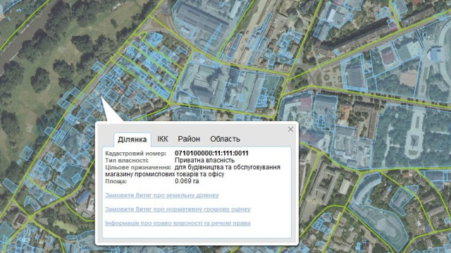 Відповідно до витягу з державного земельного кадастру, цільове призначення ділянки площею 0,069 гектара: для будівництва та обслуговування магазину промислових товарів та офісу.