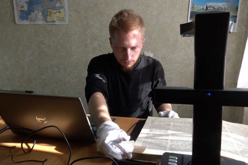 Зараз фахівці працюють з церковною книгою – «Мінеєю», яку видали в Києві у 1852 році. Як розповів Суспільному науковий співробітник Юрій Близнюк, для оцифрування книги зробив 275 знімків включно з палітуркою.