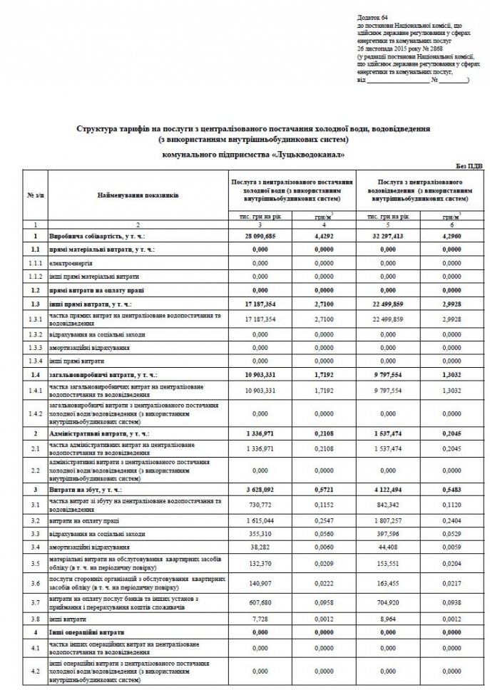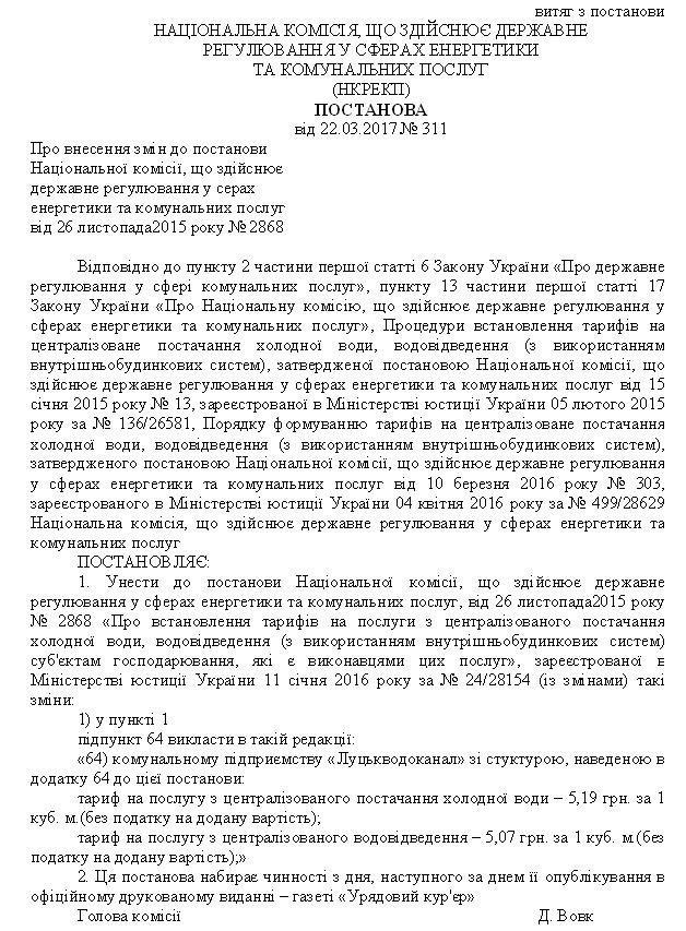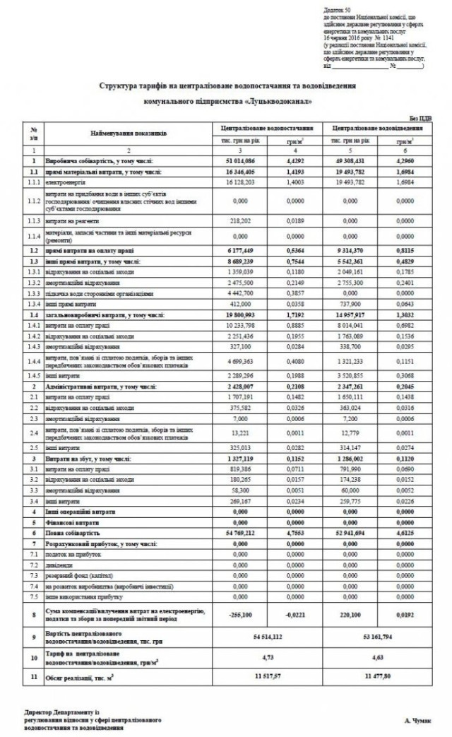 Зауважимо, на сьогодні тариф на послуги централізованого водопостачання та водовідведення становить 9,70 грн/м3, а тариф на послуги з централізованого постачання холодної води та водовідведення (з використанням внутрішньобудинкових систем) 10,60 грн/м3. «Луцькволоканал» наголошує на необхідності вчасної подачі показників квартирних засобів обліку холодної води та повного розрахунку за спожиті послуги ще за старими тарифами.