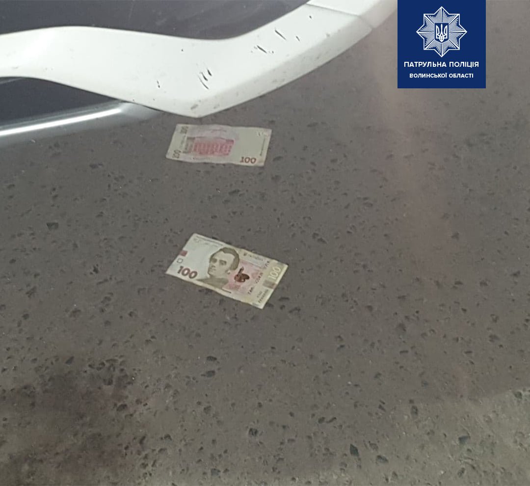 Під час оформлення адмінматеріалів, аби уникнути відповідальності, водій неодноразово пропонував поліцейським неправомірну вигоду в сумі 1000 гривень. Патрульні попереджали керманича про кримінальну відповідальність за такі дії, однак чоловік на них не реагував і поклав грошові кошти на капот службового автомобіля.Цього ж дня під час патрулювання на вулиці Львівській в Луцьку поліцейські виявили автомобіль Nissan Micra, у якого був пошкоджений бампер.