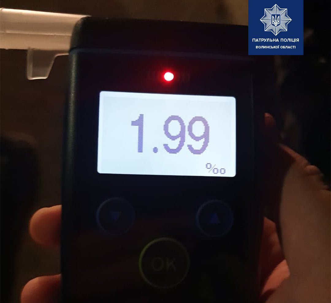 Кермувальник пройшов огляд на визначення стану алкогольного сп’яніння на місці події. Результат 1,99 проміле, що майже в 10 разів перевищує допустиму норму.