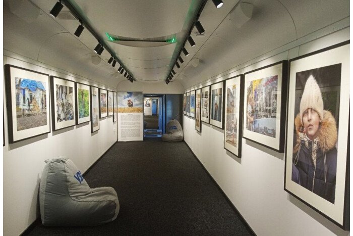 Цей проєкт – мандрівна галерея, створена за підтримки Howard G. Buffett Foundation, яка вирушає у 4-місячну подорож 63 вокзалами України. У переобладнаних вагонах – виставка «Courage of a Nation» про незламність українців, очима американського філантропа та фотографа Говарда Баффетта.