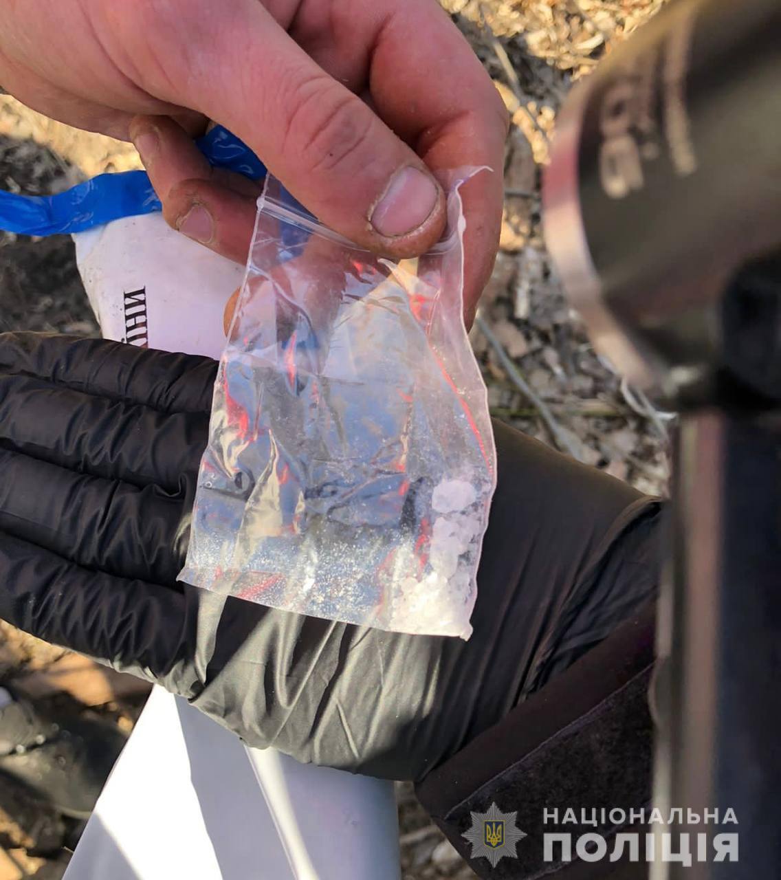 Під час поверхневої перевірки та огляду автомобіля в них виявили прозорі пакетики з ймовірно психотропними речовинами та саморобні пристрої для вживання наркотиків. Правоохоронці встановили, що 19-річний та 21-річний правопорушники можуть бути причетні до розповсюдження наркотиків на території області.