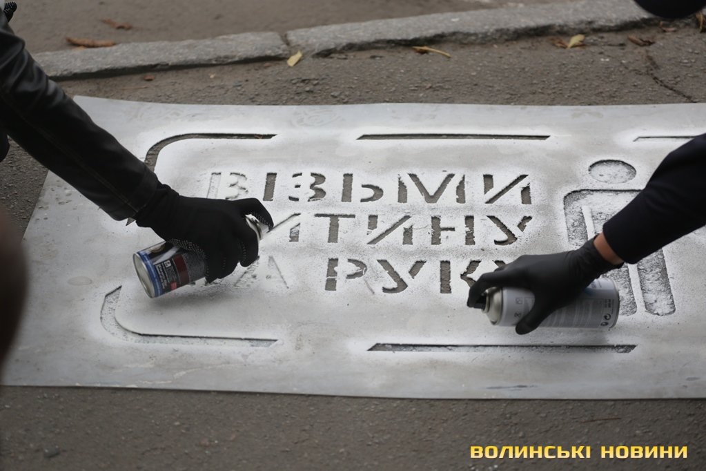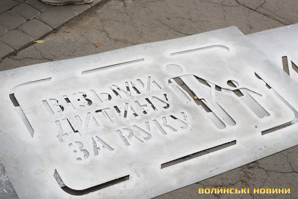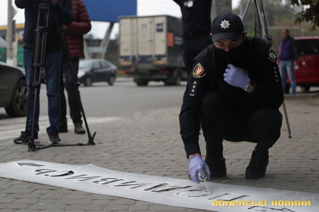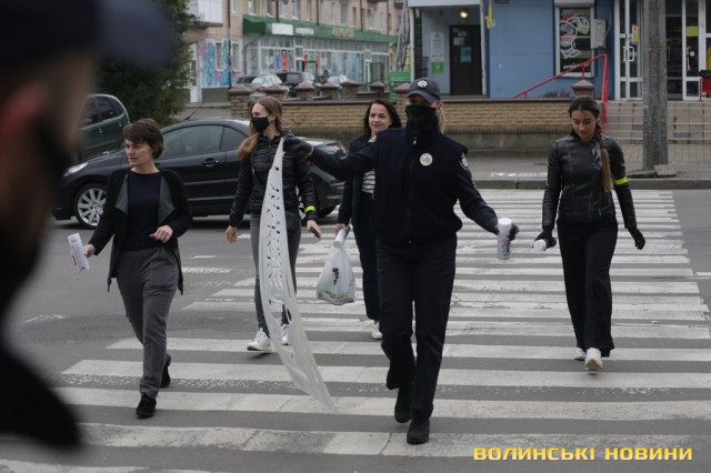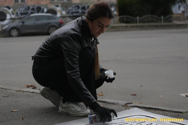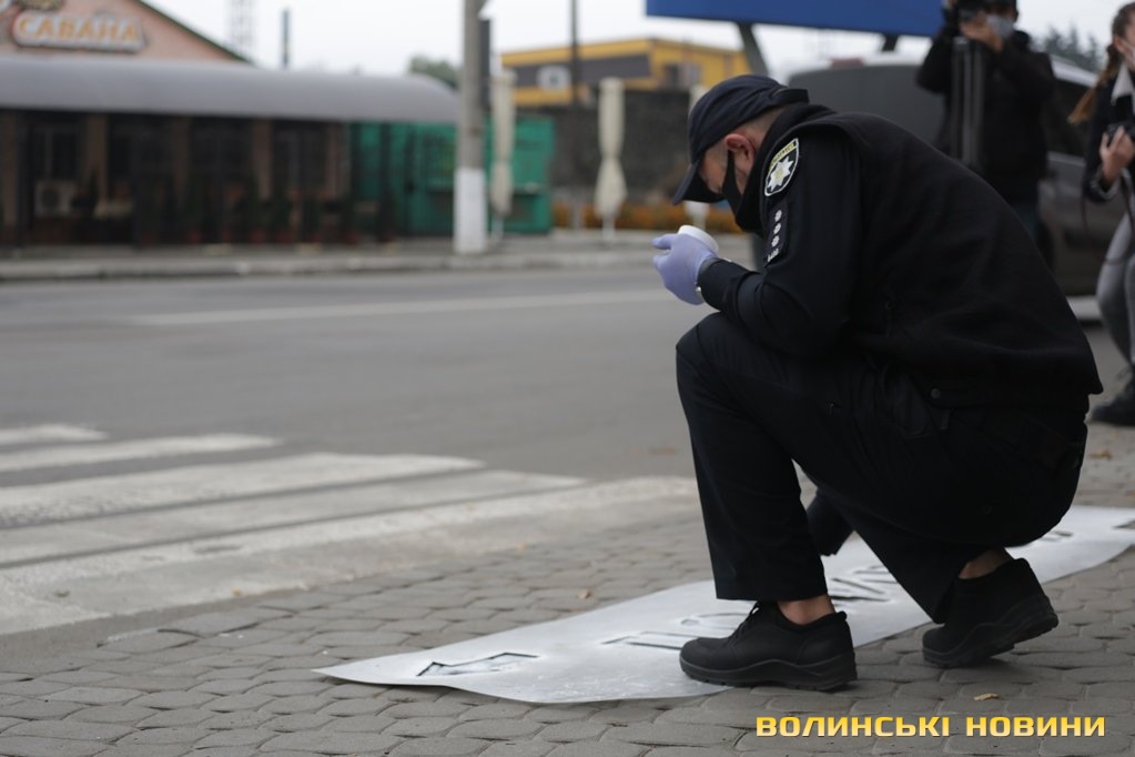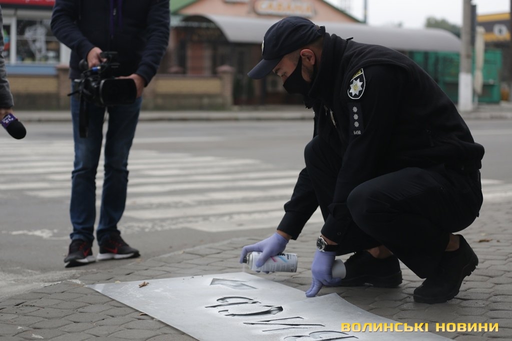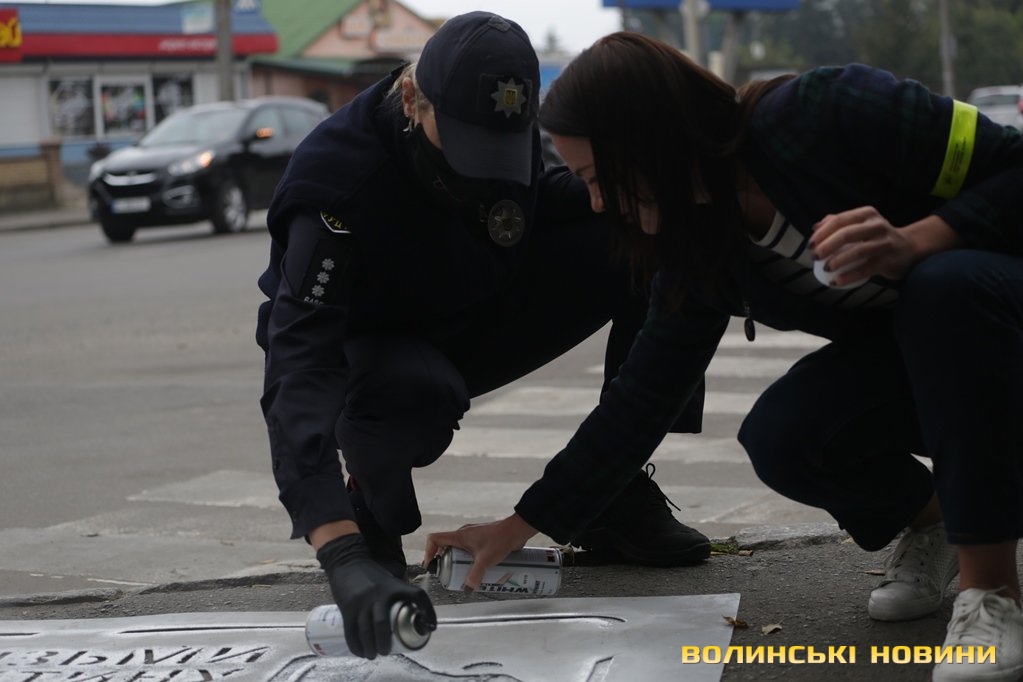 Патрульні поліцейські спільно з працівниками департаменту сім’ї, молоді та спорту Луцької міської ради малювали попереджувальні написи перед пішохідними переходами. Мета таких написів - нагадати лучанам, що необхідно бути вкрай уважними, перетинаючи проїжджу частину.