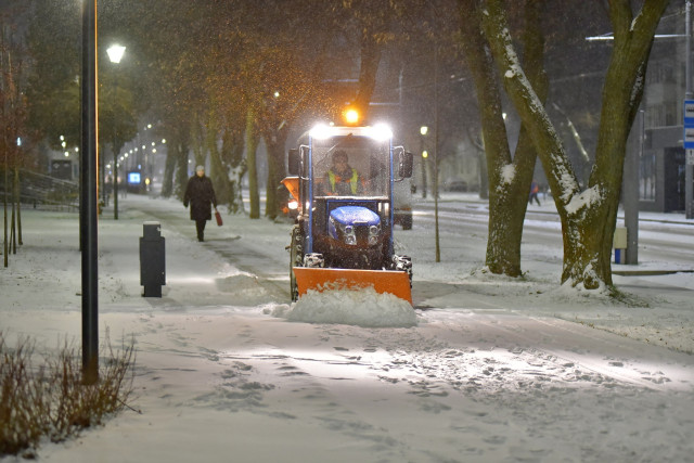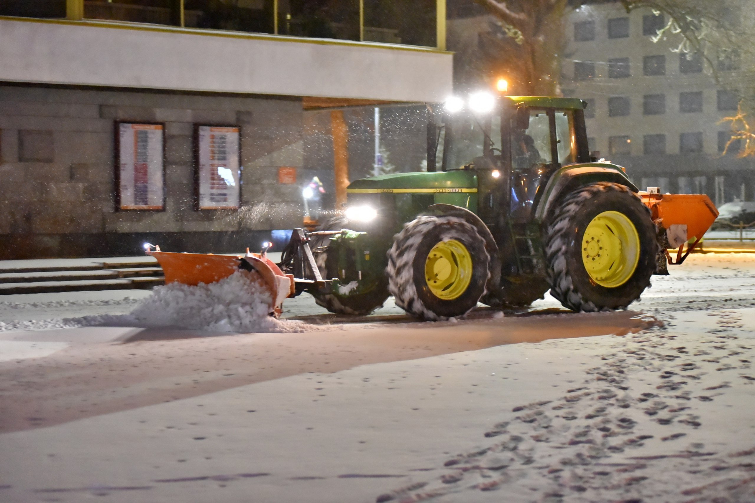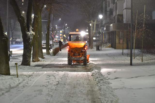 Оскільки сніг продовжує падати, усі залучені працівники та техніка працюють у посиленому режимі.