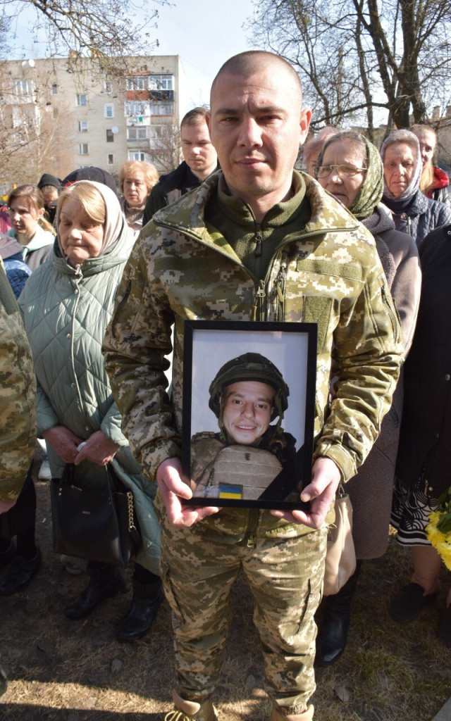 Сьогодні, 24 березня, біля будинку на вулиці Гімназійній, 1 прощалися із військовослужбовцем Максимом Кузнєцовим (04.02.1997 року народження).