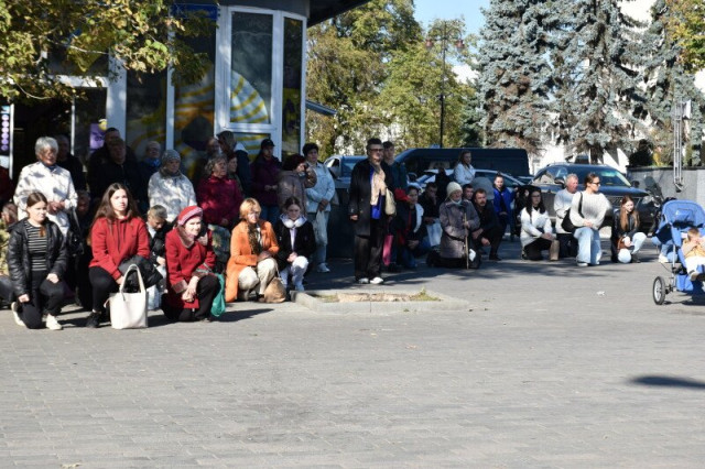 Після завершення богослужіння труну з тілом покійного захисника пронесли Театральним майданом, де лучани віддали останню шану, схиливши коліна. Біля фотостенда пам’яті загиблих Героїв присутні зупинилися і виконали Державний Гімн України.