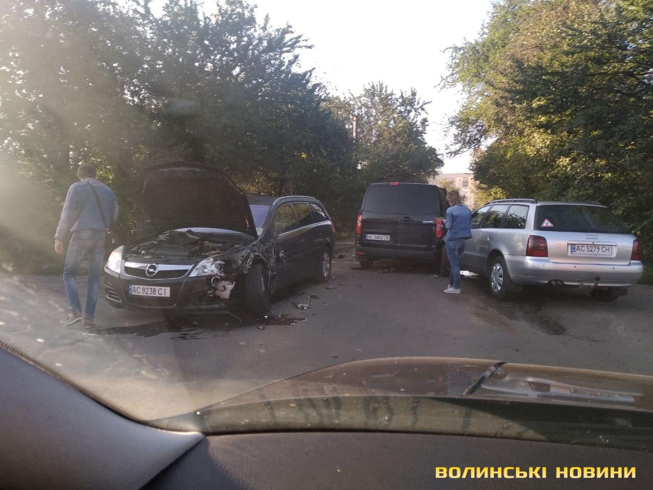У Луцьку – подвійна ДТП: зіткнулися Опель, Ауді та Мерседес